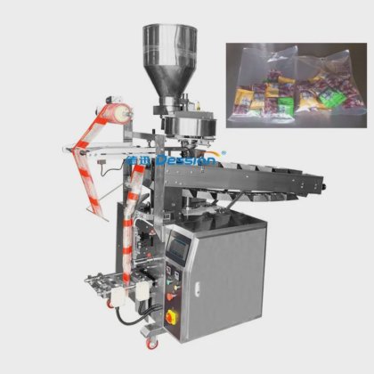 このタイプの包装機は、キャンディー、ピーナッツ、チョコレートビーンズ、ポテトチップス、クリスピーライス、リンゴスライス、ゼリー、キーホルダー、靴のバックル、バッグのバックル、金属片など、脆い材料や計量が容易な材料の包装に適しています。
