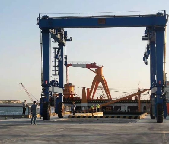 移動式ボートの起重機クレーンはデッキのボートを、港で持ち上げるか、またはボートの工場でボートの船を作るために持ち上がる操作によって滑らかに水に出入りするために広く利用されています。その上、それは安全、便利および速度の工場の維持、修理および動きの仕事を完了できます。それは二重門脈構造に固定されるある柔らかいかしっかりしたベルトによって形作られる「U」の形のフレームを備えています。 ボートの起重機クレーンは海岸の側面からの別のトン(10T-1000T)ボートかヨットを扱うことができます。