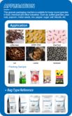 1. 食品業界:ピーナッツ、ポップコーン、ゼリー、豆、ニンニク、豆類、穀物、大豆、ピスタチオ、クルミ、米、トウモロコシ、ヒマワリの種、メロンの種、コーヒー豆、ポテトチップス、バナナチップス、プランテンチップス、チョコレートボール、エビ、キャンディー、砂糖、お茶、ハーブ、膨化食品、乾燥食品、冷凍食品、冷凍野菜、冷凍エンドウ豆、冷凍フィッシュボール、冷凍パイ、その他の粒状製品。
