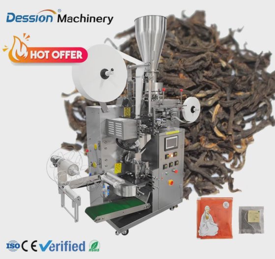 中国製、高効率CE認証ティーバッグ包装機、糸とタグで包装された濾紙入りのお茶
