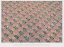 駐車場の芝生の舗装レンガが機械を作っている